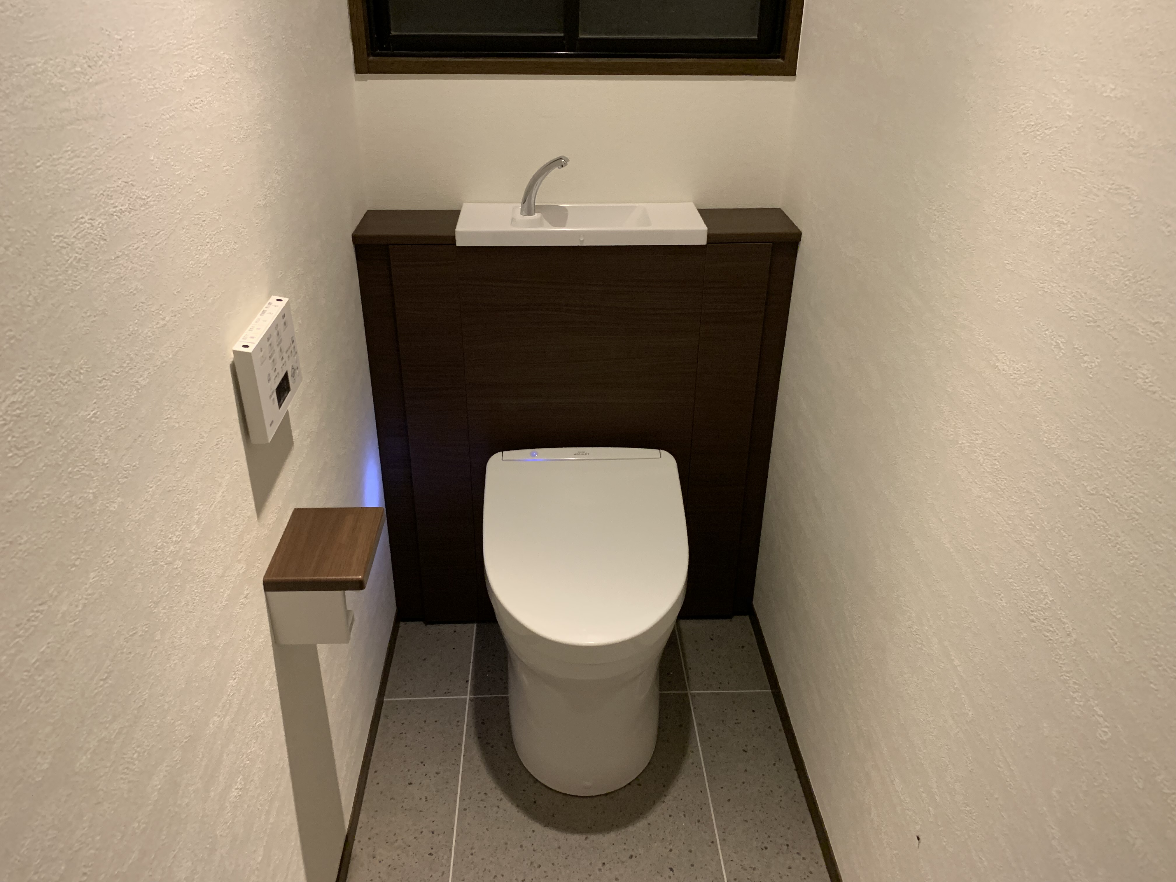 浴室・洗面・トイレのリフォームです。それぞれデザイン性・機能性が高い機種をお選び頂き、こだわりの水廻りが完成致しました。