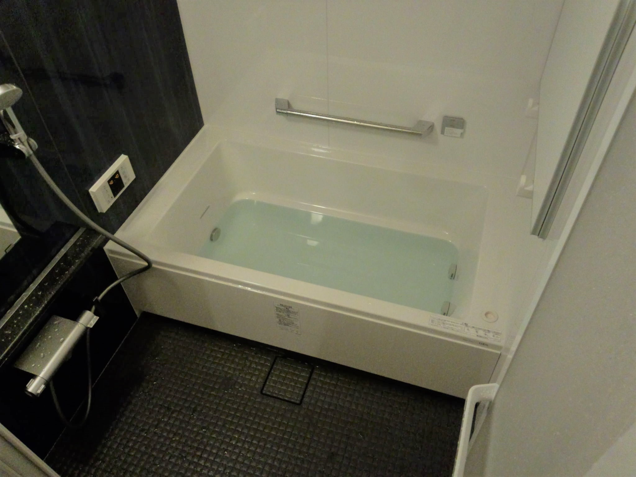 マンション浴室のリフォームです。システムバス『リクシル リノビオV』はマンションリフォーム用なので、搬入から取付けにいたるまでの効率の良さが特徴です。ご近所への騒音などの心配もありません。