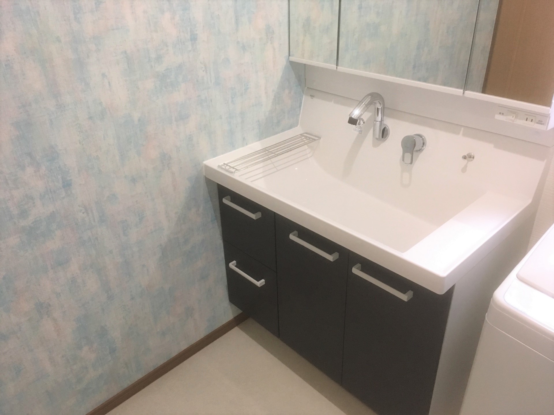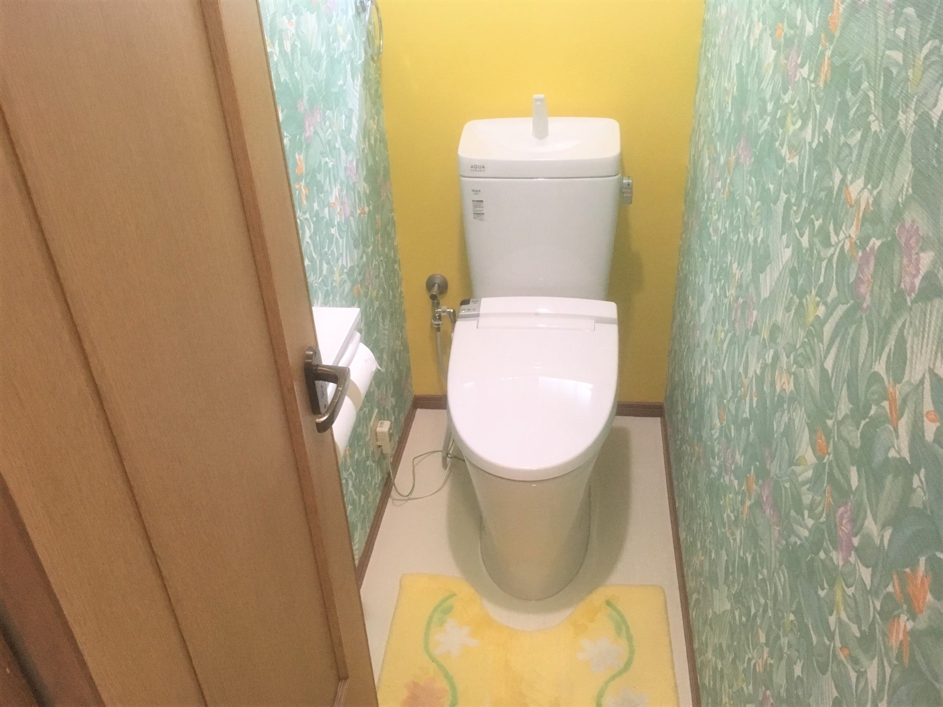 浴室・洗面・トイレのリフォームです。華やかなトイレのクロスは施主様のセンスが光ります☆