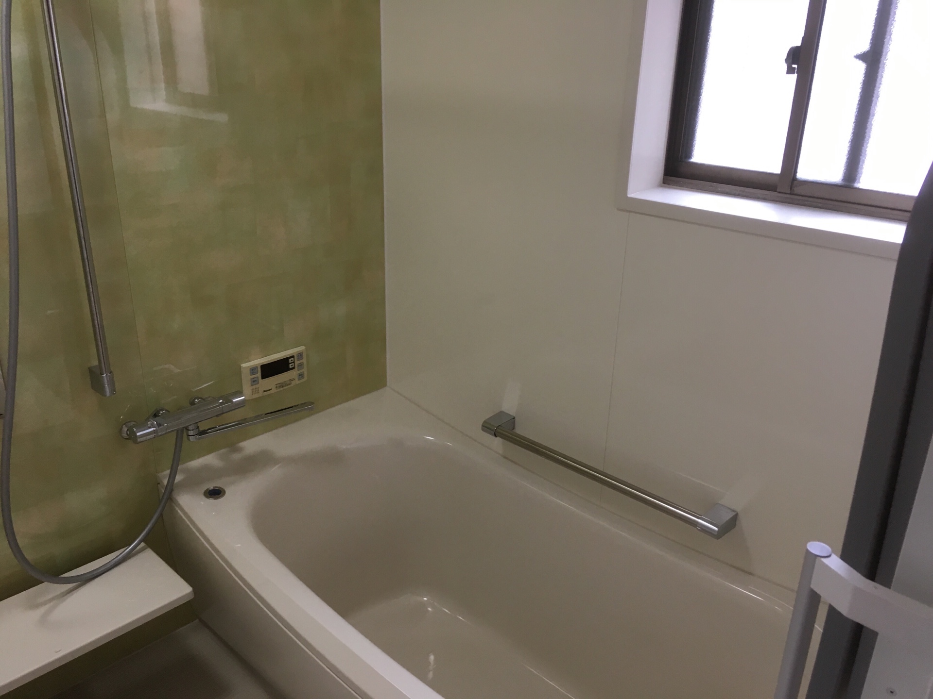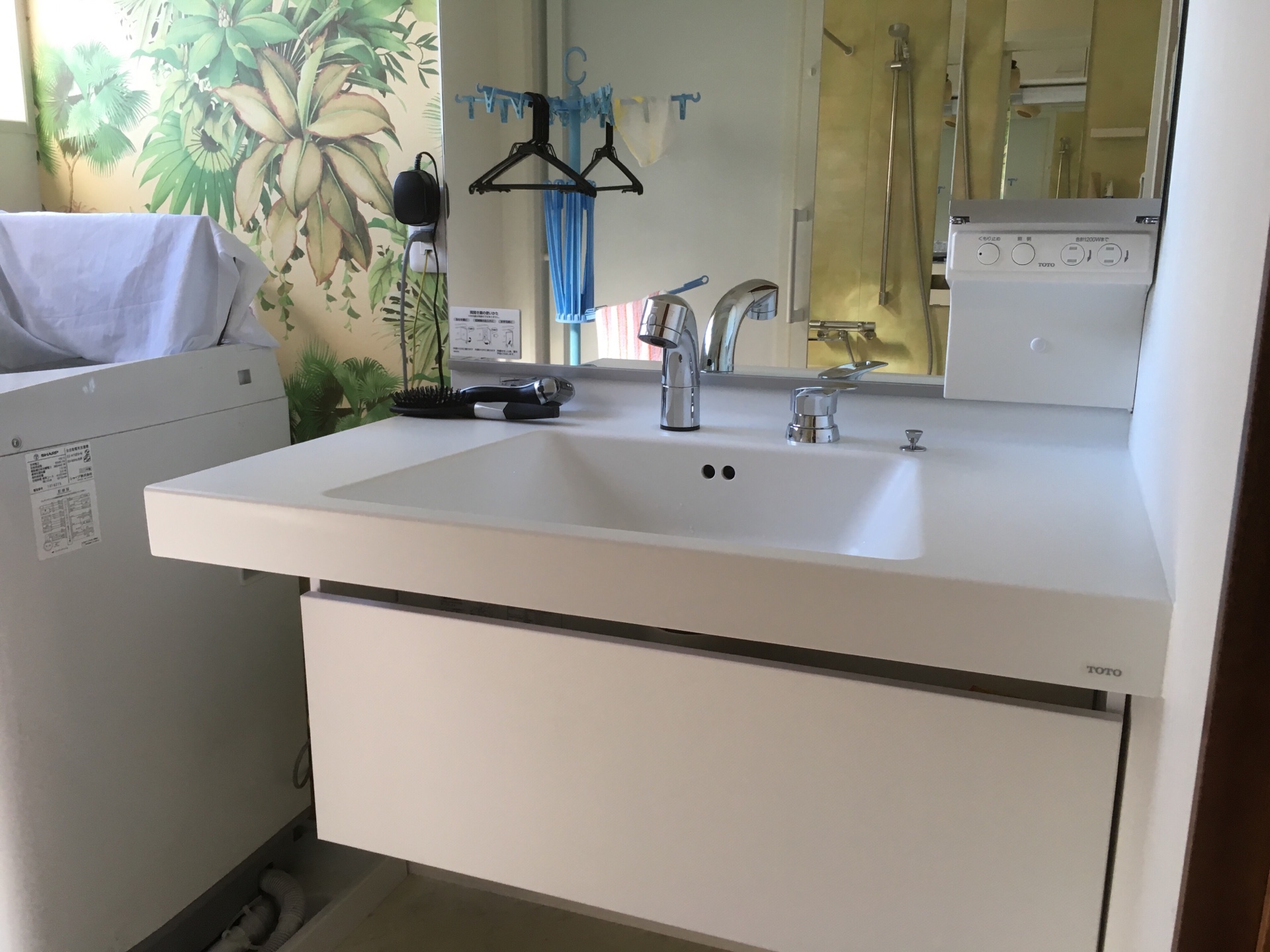 浴室と洗面脱衣所のリフォームです!選んで頂いた洗面化粧台はユニバーサルデザインが特徴の『座ってラクラクシリーズ』です。小さなお子様から大人まで使いやすく、美しいデザインも特徴のモデルです。