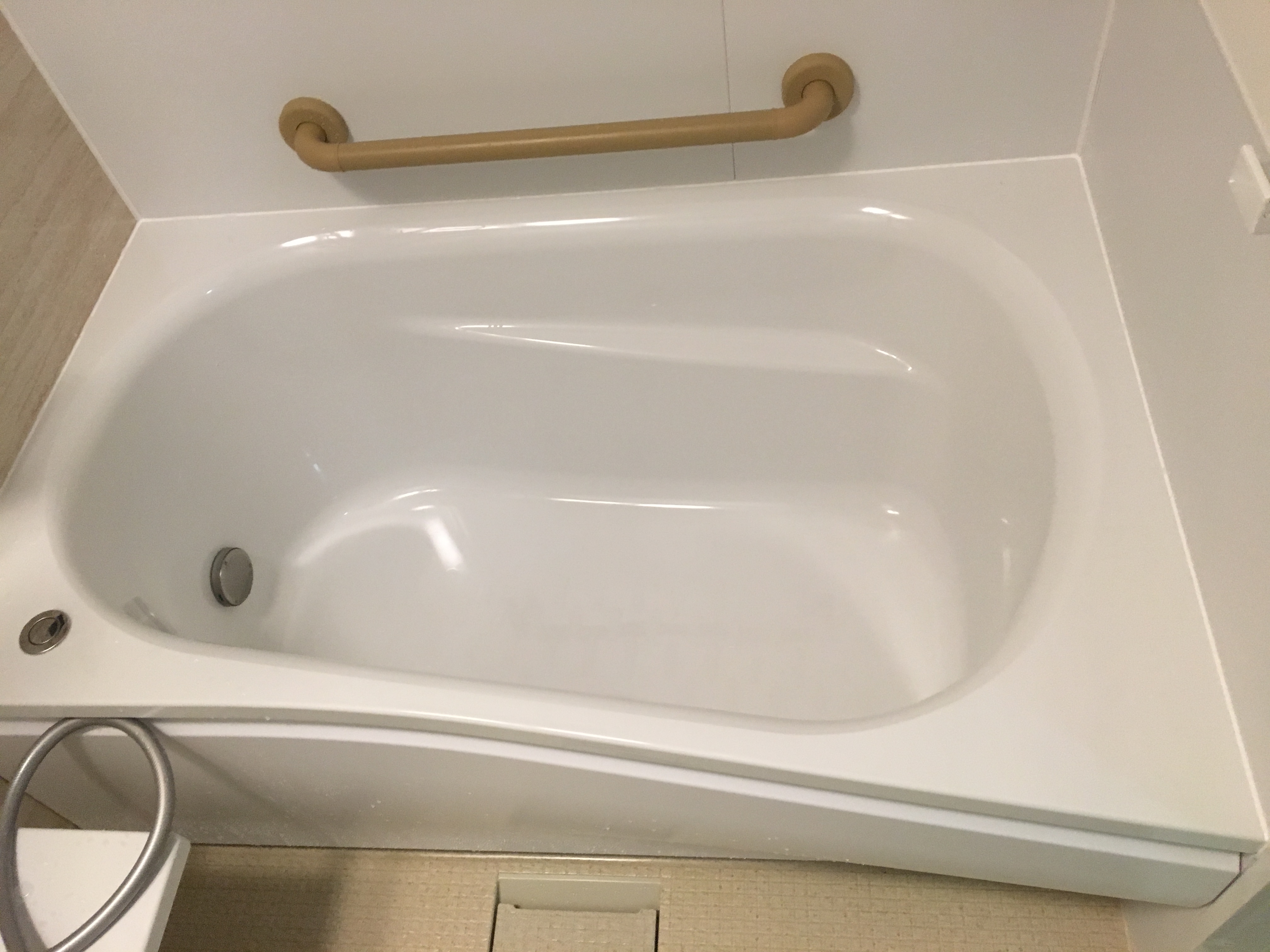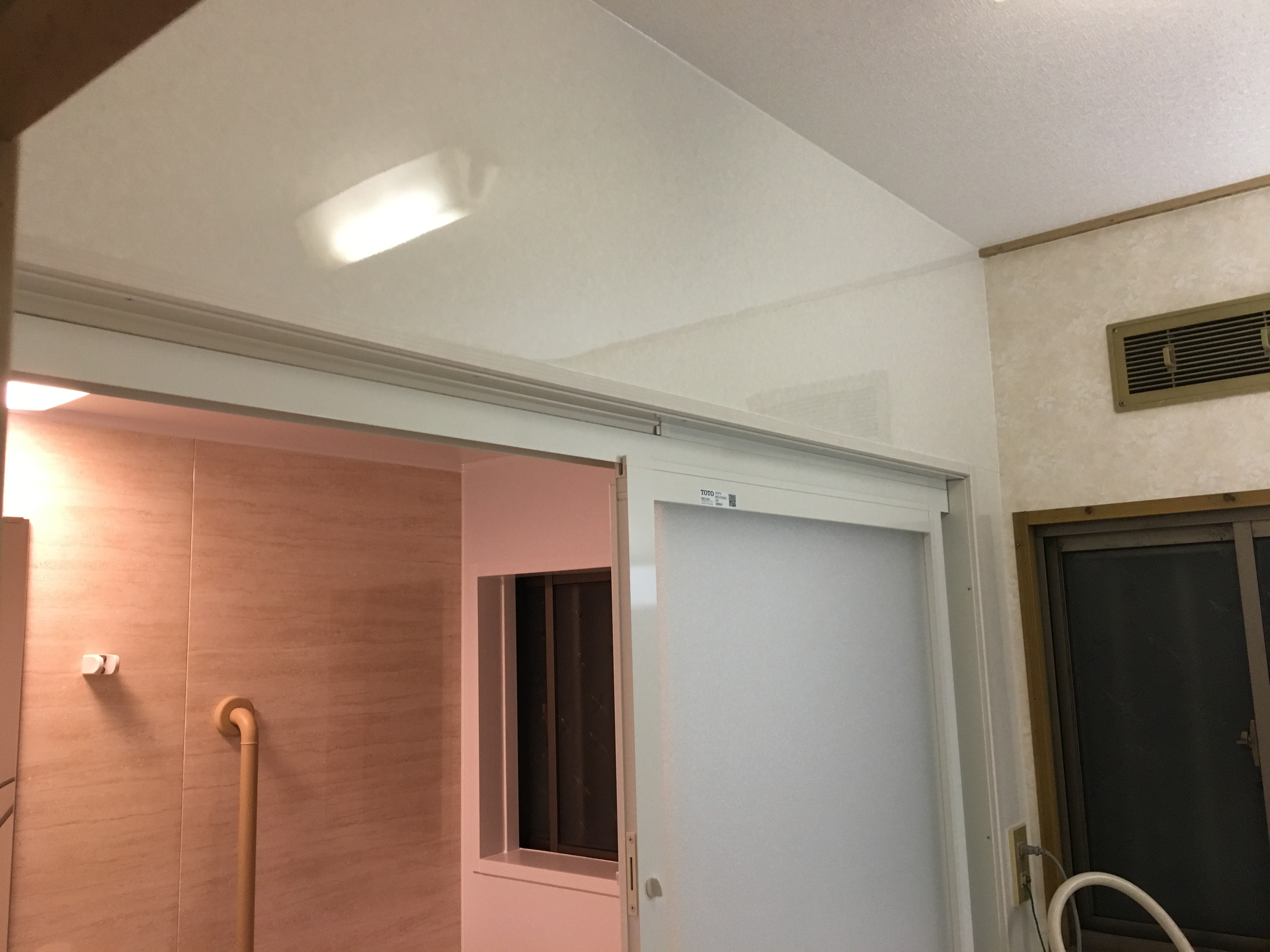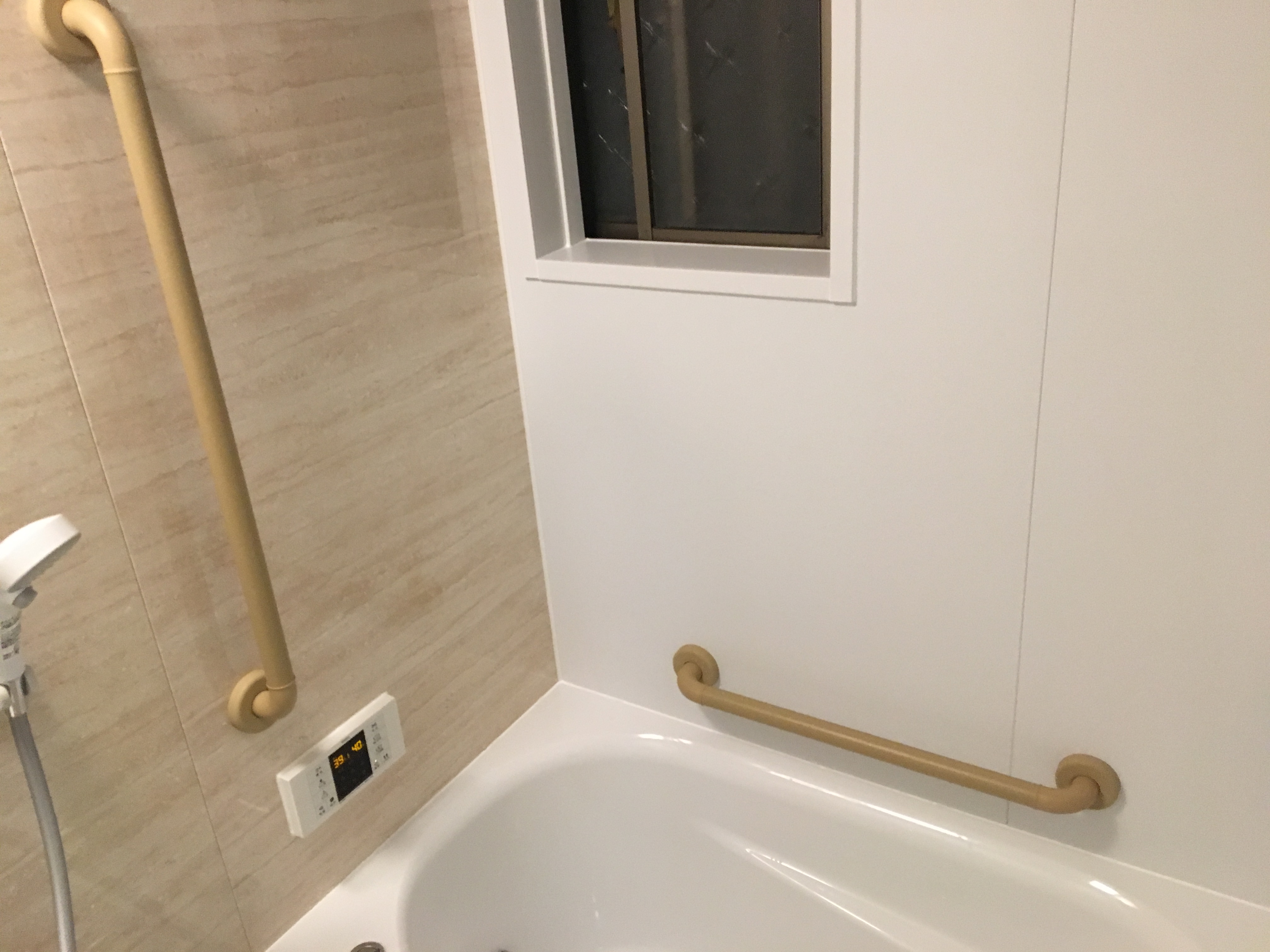TOTO サザナHS1216 Sタイプ(標準:魔法瓶浴槽)入り口:引き戸タイプ 手すり:I型2か所 洗面所の壁(浴室と洗面所の間の壁)はパネルで仕上げになっております。給湯専用給湯器をノーリツ 給湯器 追い炊き付き オートタイプに取替えました。