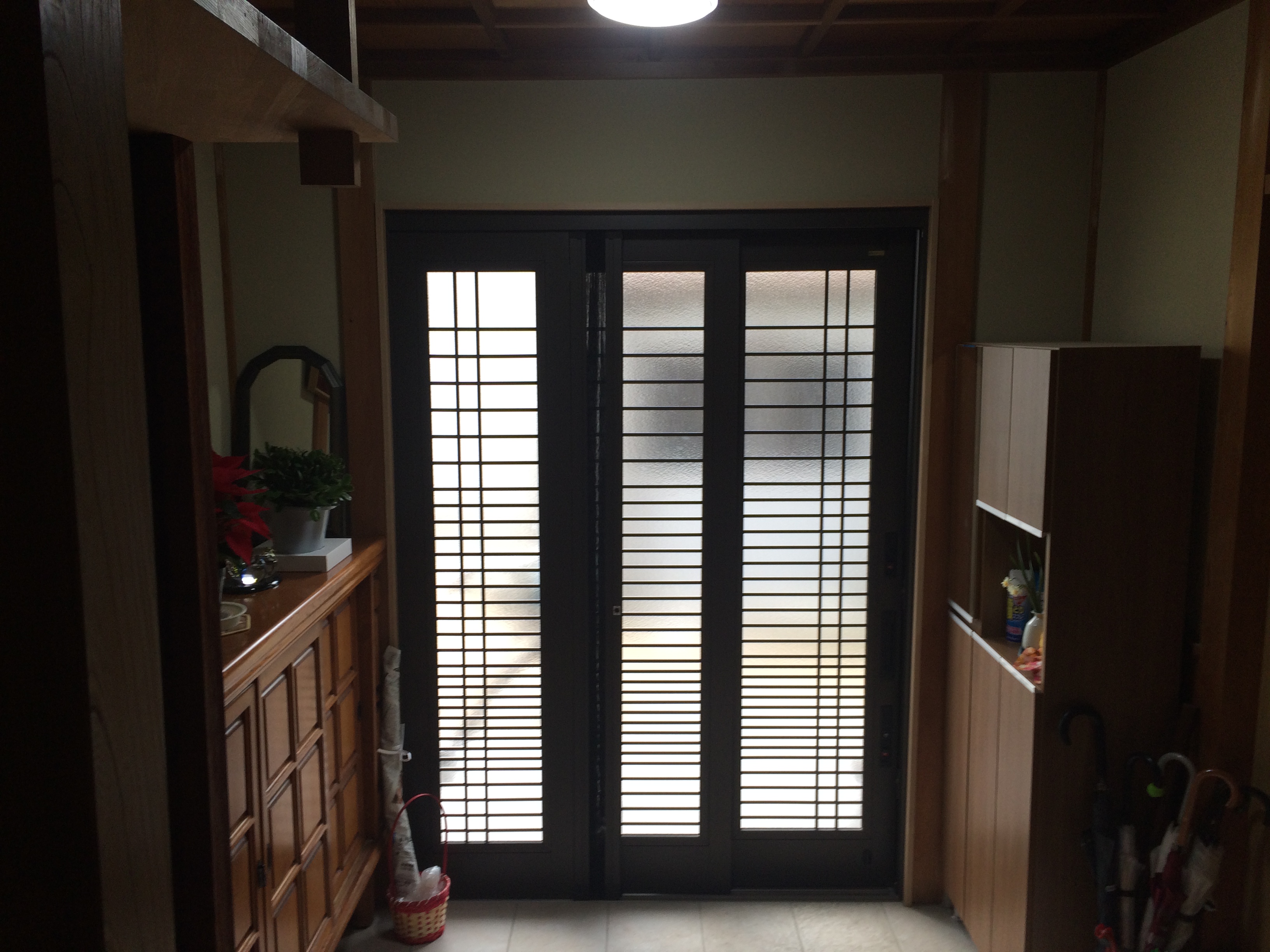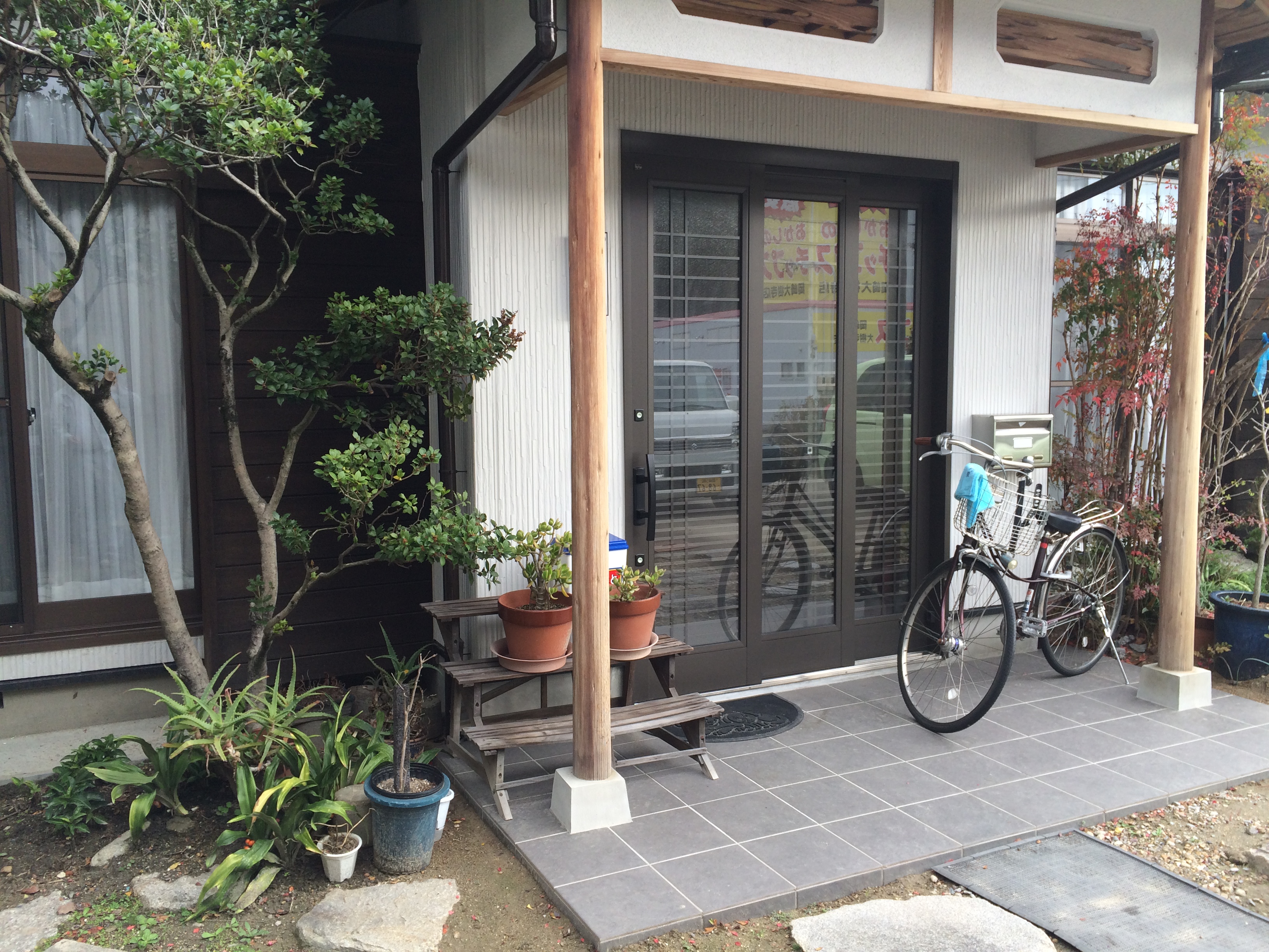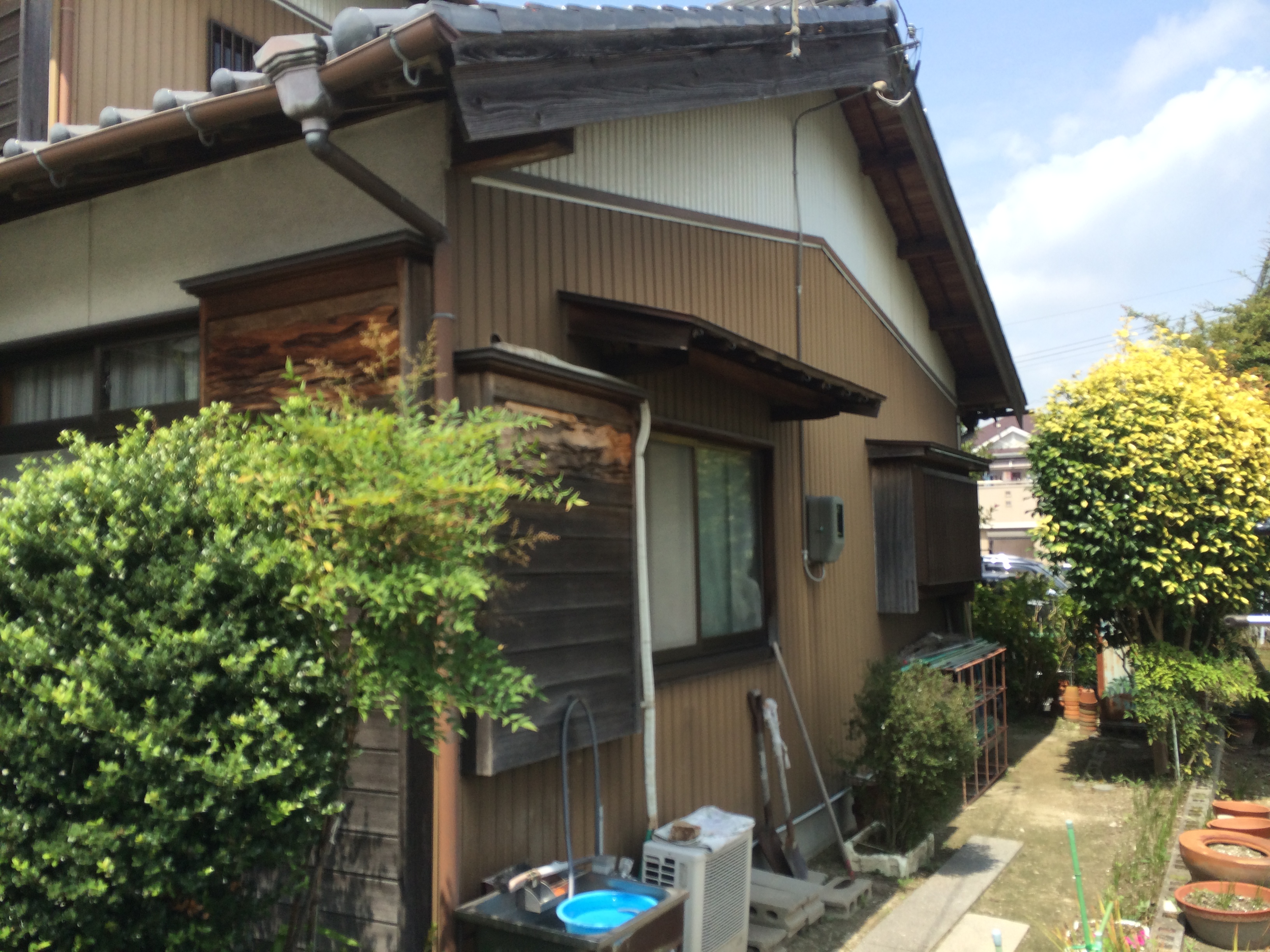 建物の強度を上げる為にトタンを捲り、構造用合板を張りニチハサイディング MD682に張り替えました。断熱性もメンテナンス性も向上しました。 玄関は引き違い戸の建具から3本片引き戸のトステム PG木屋町w30型に取替えました。開口が広がり通りやすくなりました。 漆喰のやり替えも足場がある間に施工いたしました。