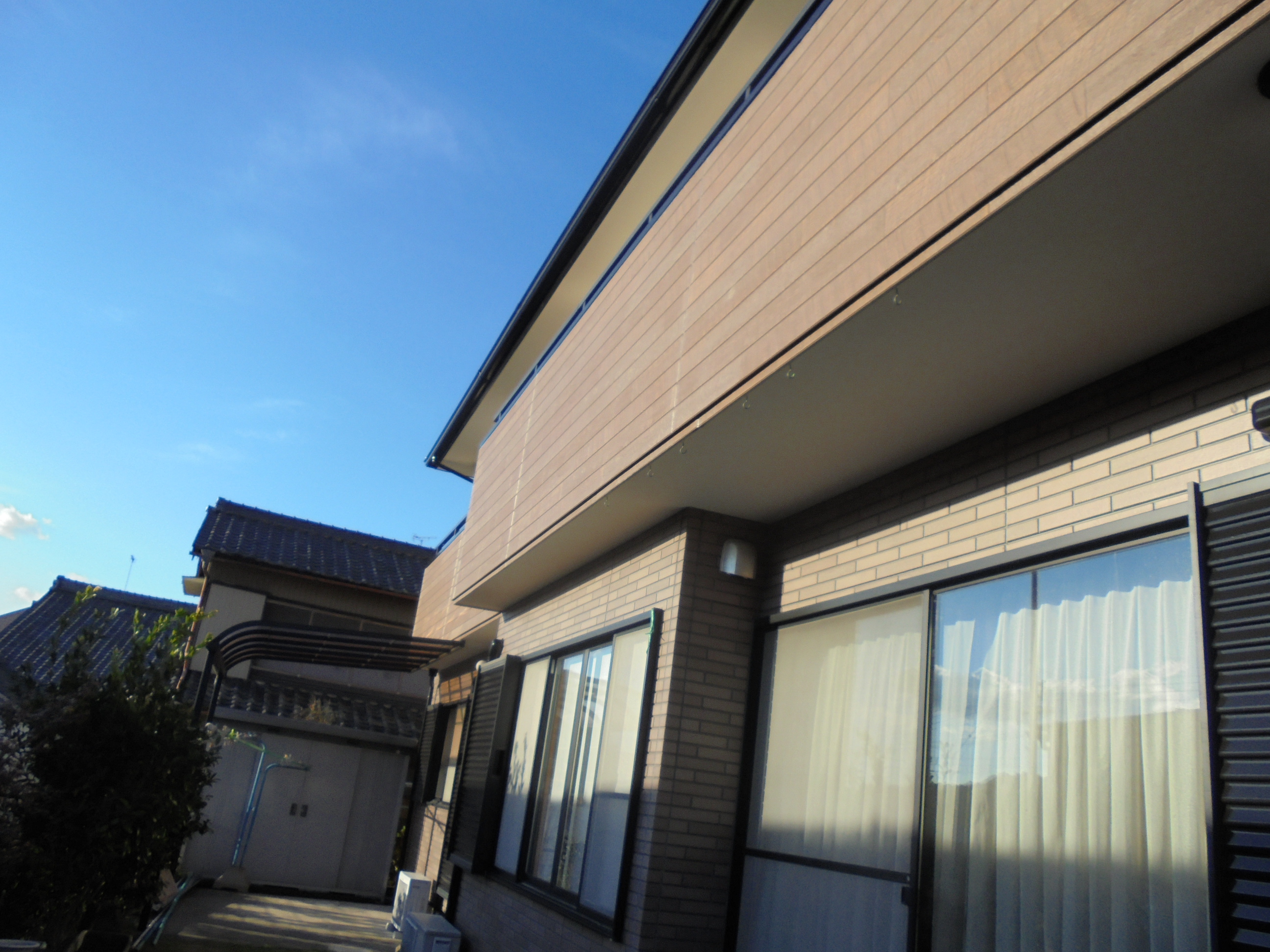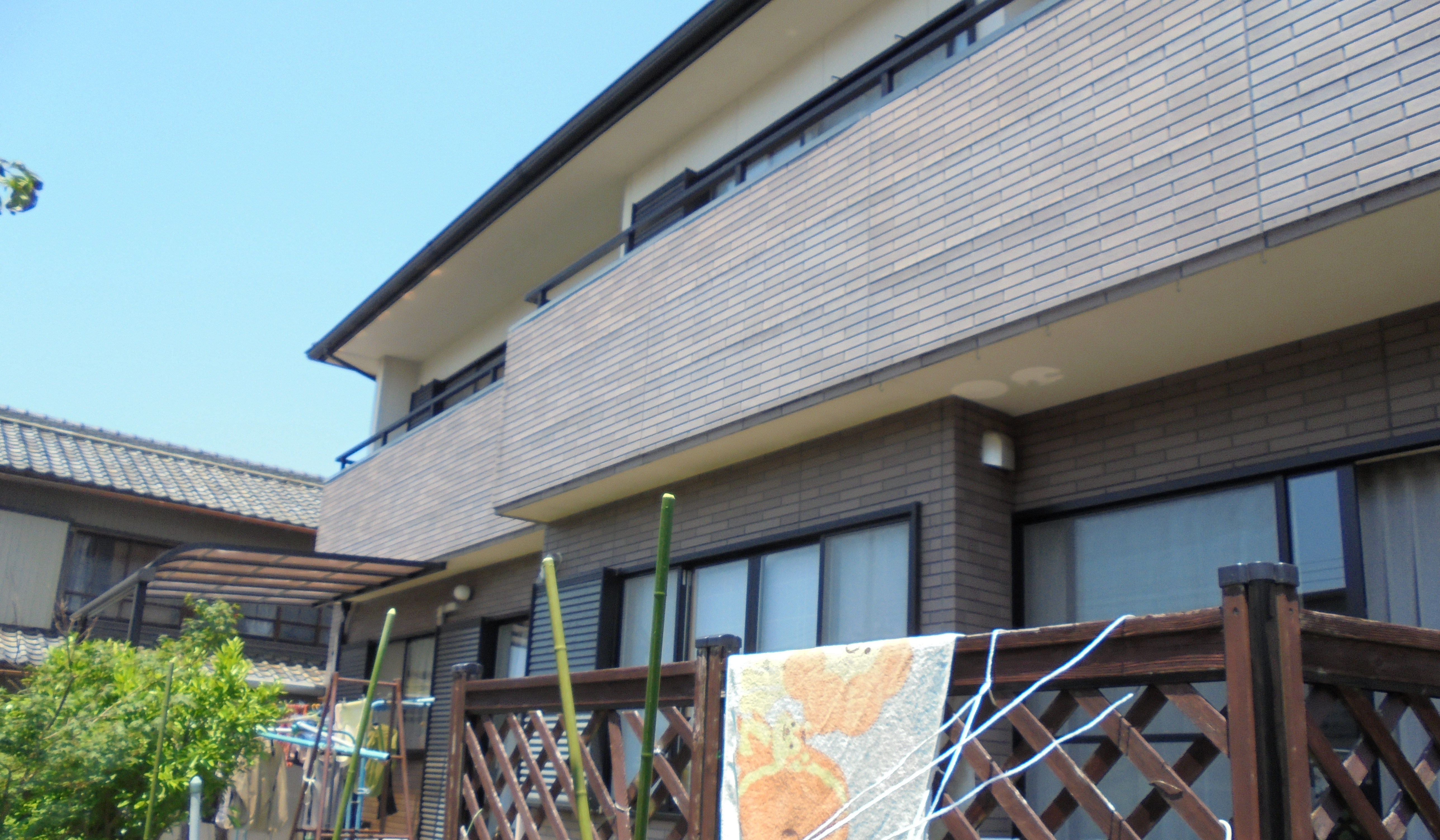 元は1階部分と2階ベランダの外壁はタイル調の化粧のサイディング、