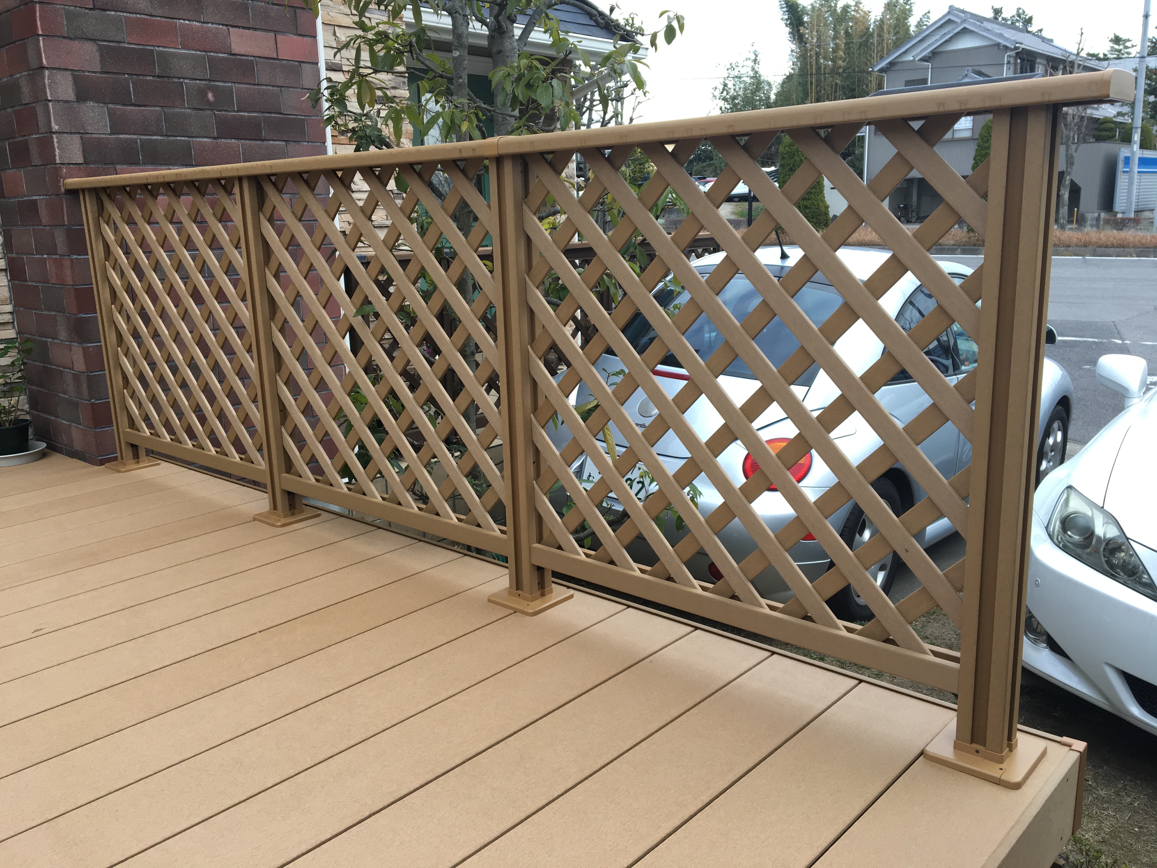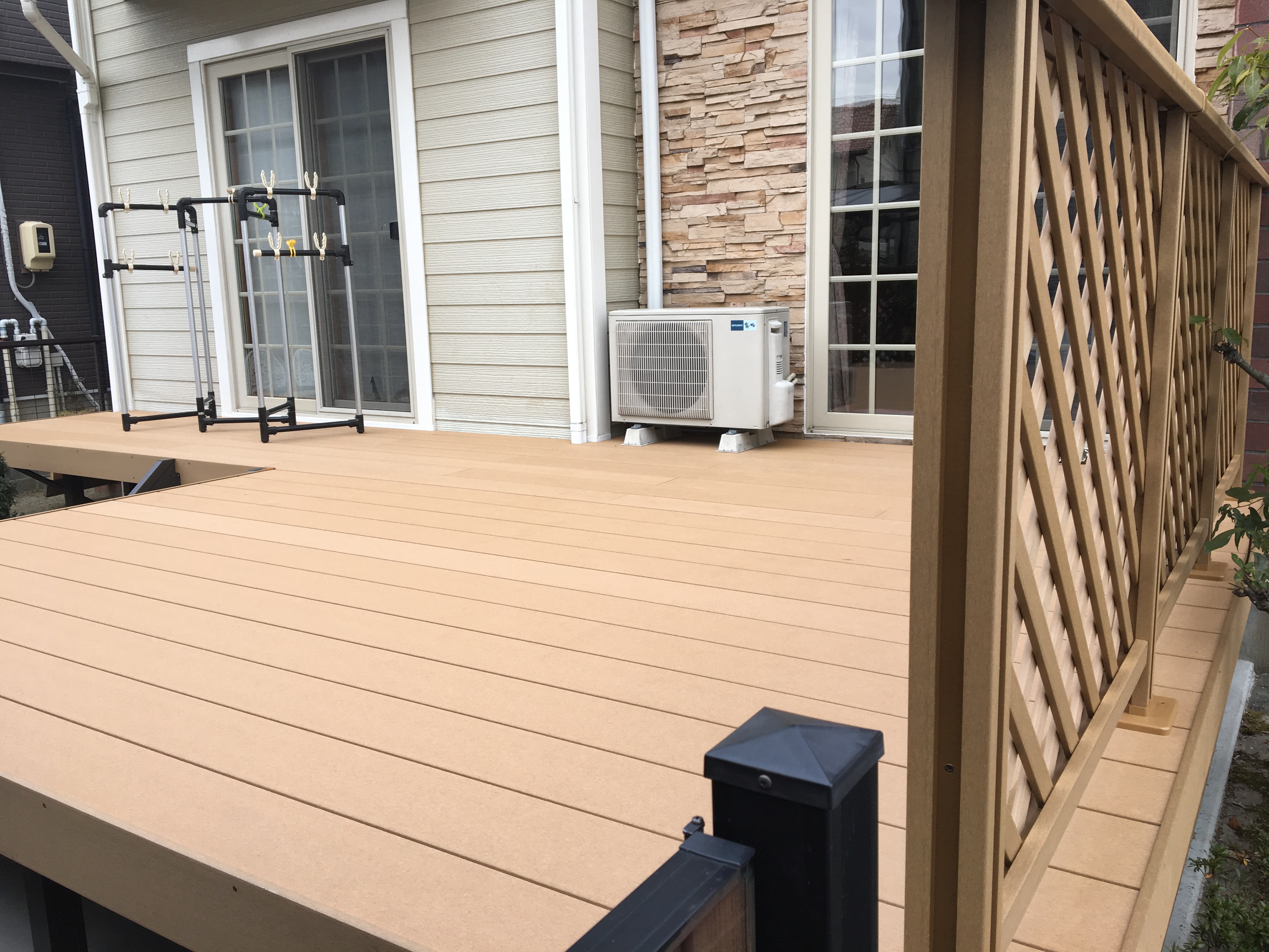 リクシル:樹ら楽(人工木デッキ)約20㎡ フェンス、階段付き デッキ下土間打ち:100mm