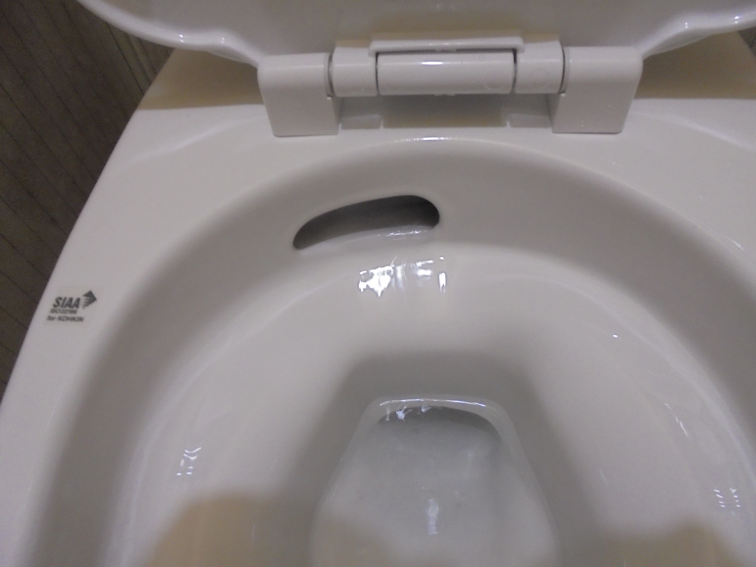 また、画像(中段・下段)であるように、洗浄の水が便器奥の中央から半時計回りに