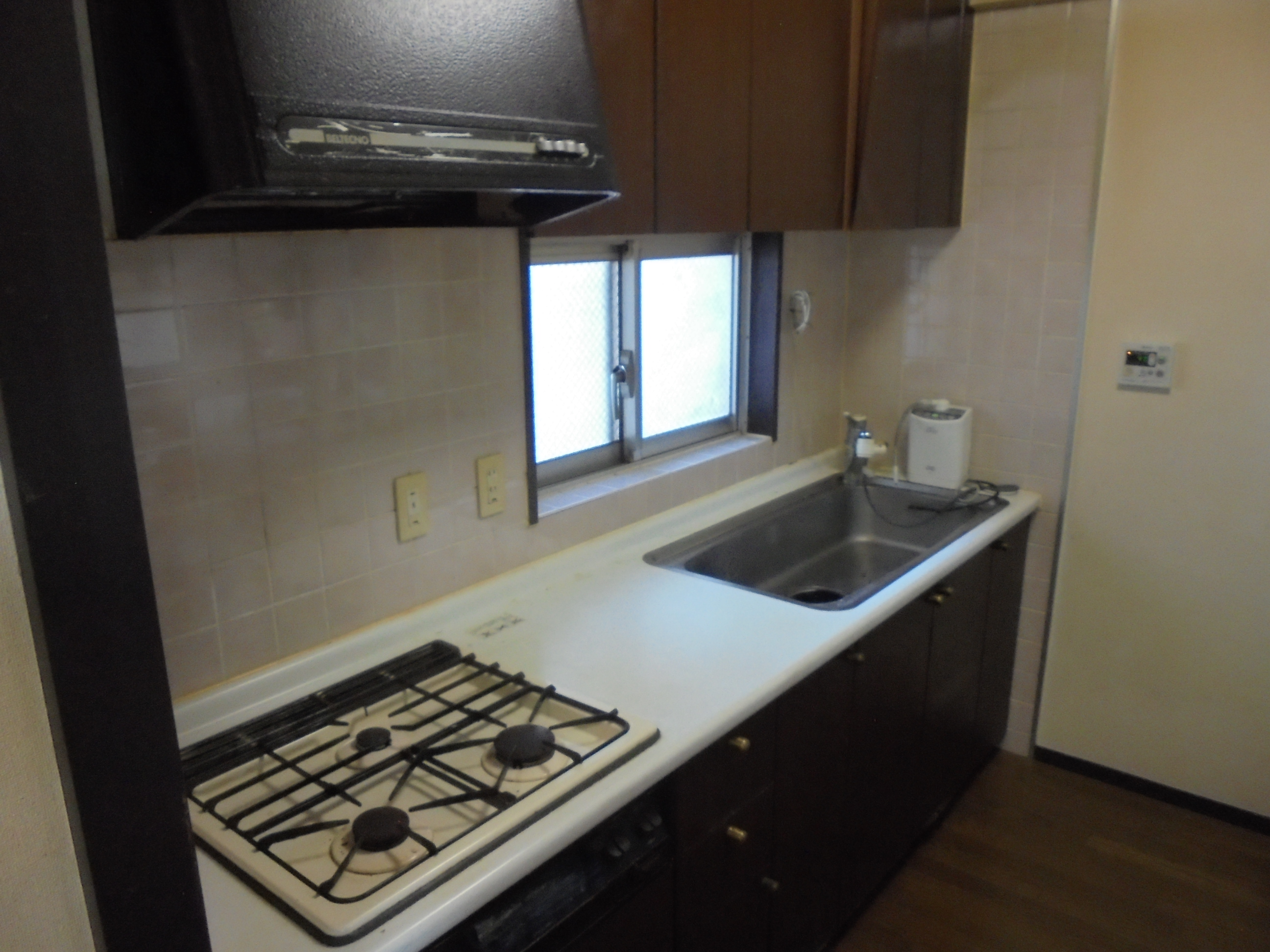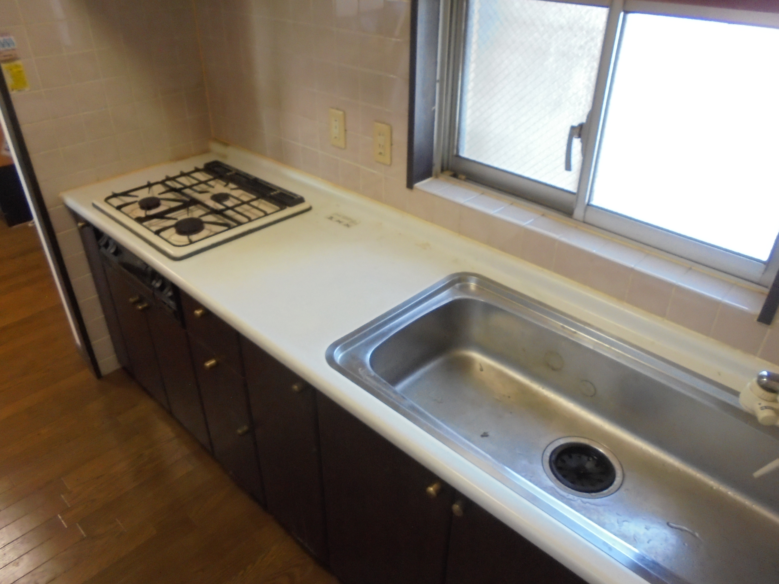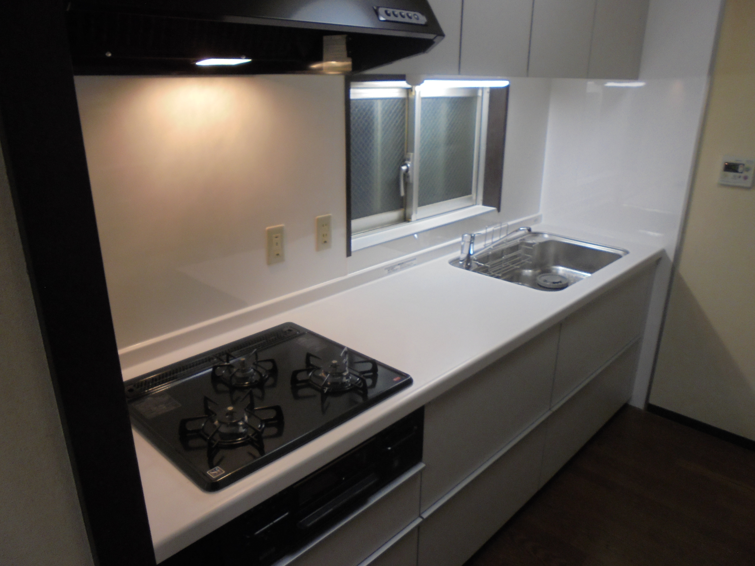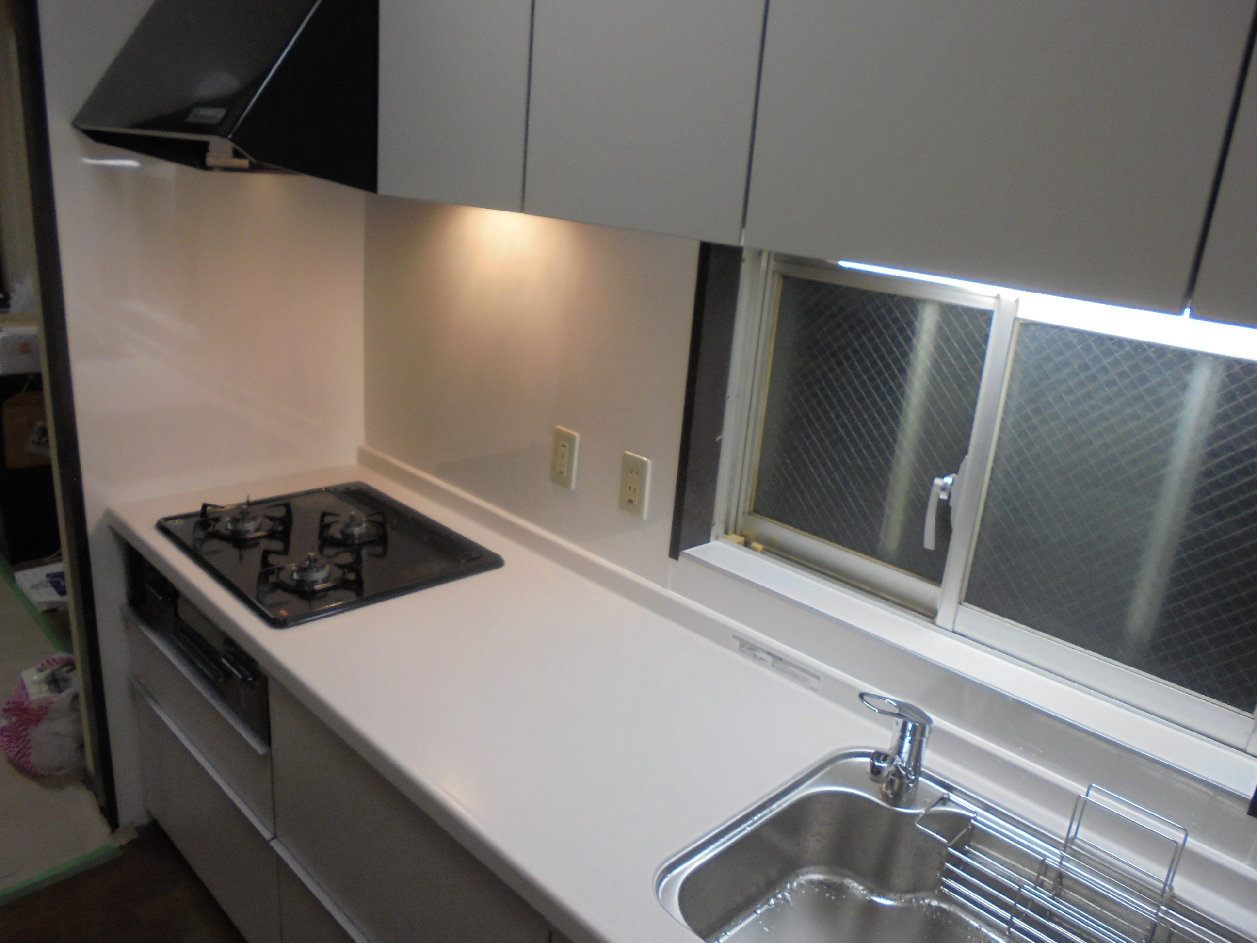 ホワイトの壁パネルに替えた為、台所全体が明るくなりました。