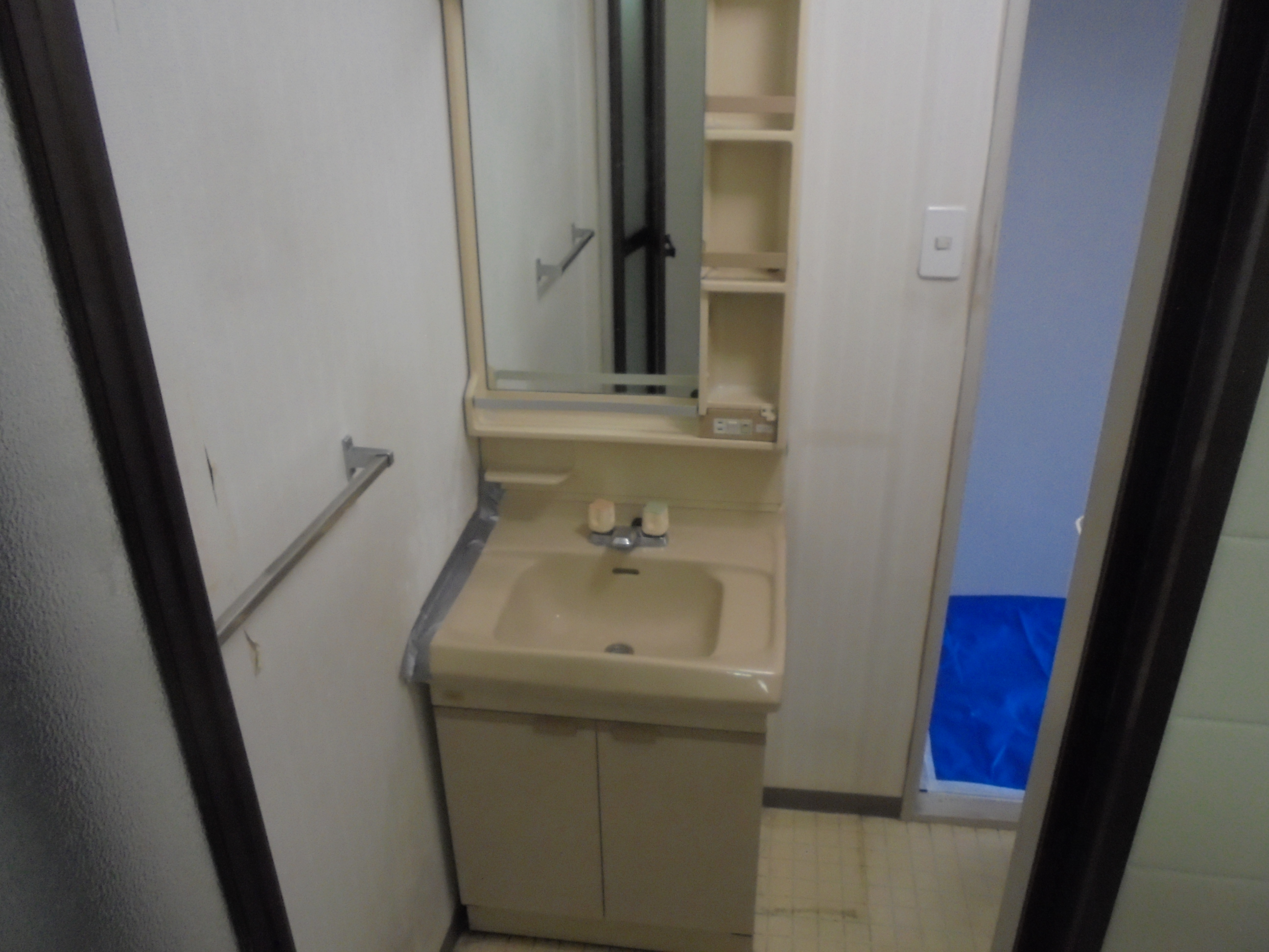 洗面台は正面立ち上り部分に水栓の付いた、これまた汚れにくく、掃除のしやすいものへ取り換えました。