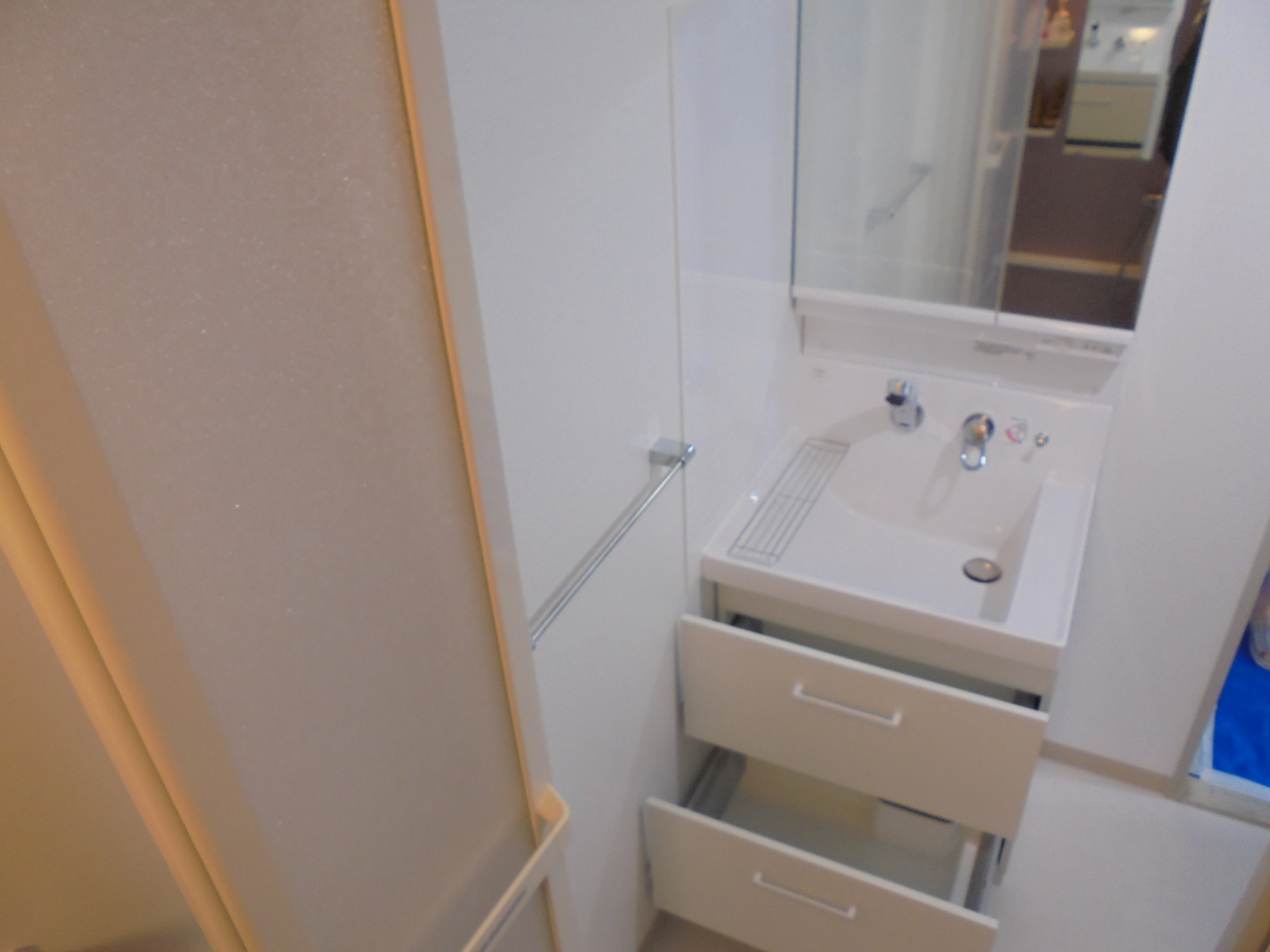- バス:リクシル リノビオV Fタイプ 1116サイズ 洗面台:リクシル ピアラ W600 フルスライドタイプ