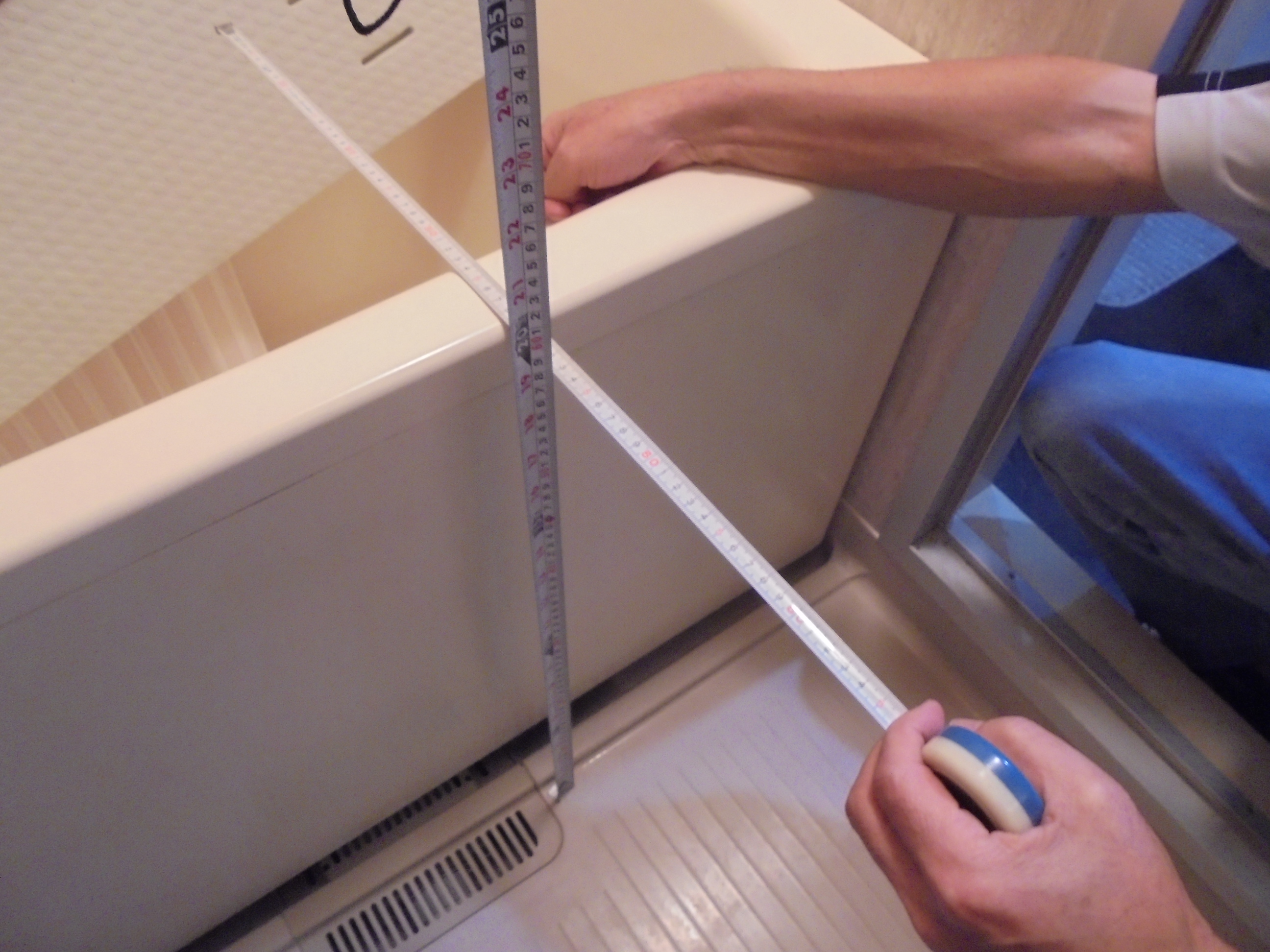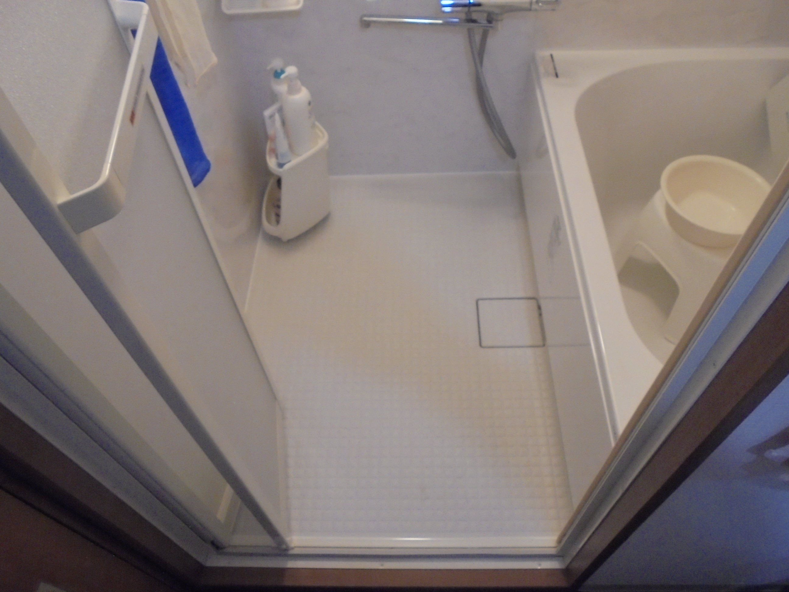 築34年のマンション浴室改装工事です。 上手に使われており、かなりしっかりお手入れされている浴室だったのですが、 この年代の浴槽は、へりの立ち上りが高かったり、入口の段差が10cm以上あったりで、 年齢とともに出入りが辛くなってきた為、今回の工事を決められました。 浴槽、入口の段差解消の為にも、新しいユニットバスへの取替えは有効です。