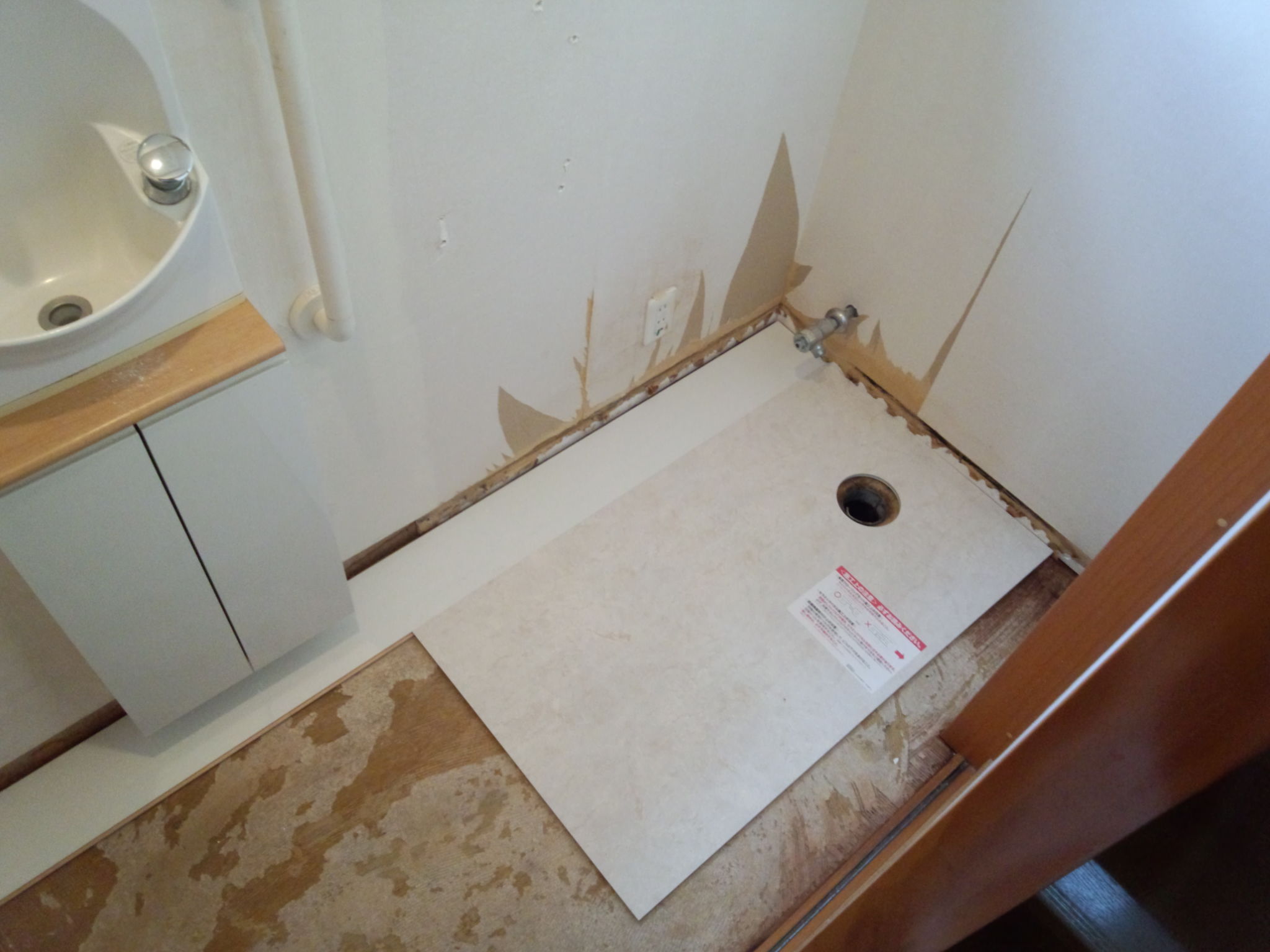 床の他の部分はセットになっているフローリングセット、その他の壁と天井はクロスの貼替工事を行いました。