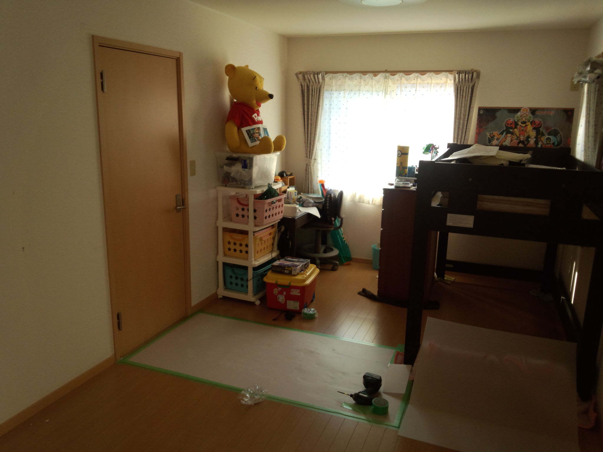 今まで12畳程の部屋をご姉弟2人で使っていましたが、成長に伴い部屋を分割を、と今回ご依頼をいただきました。 もともと分割を想定されたお部屋の為、ドアは2カ所ありましたので部屋の中心にクローゼットと壁を新設します。
