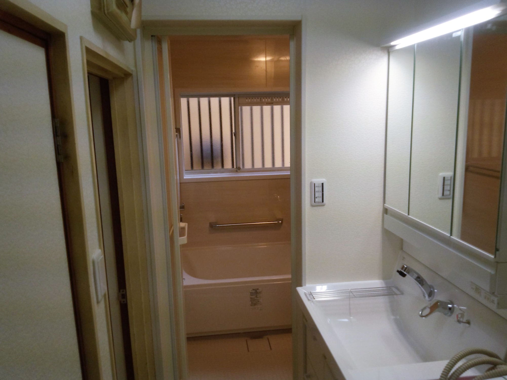 以前は多く見られたタイル貼りの浴室ですが、冬は寒くお掃除も手間がかかる為、暖かく快適な空間へと改装します。同時に洗面化粧台もお取替えします。