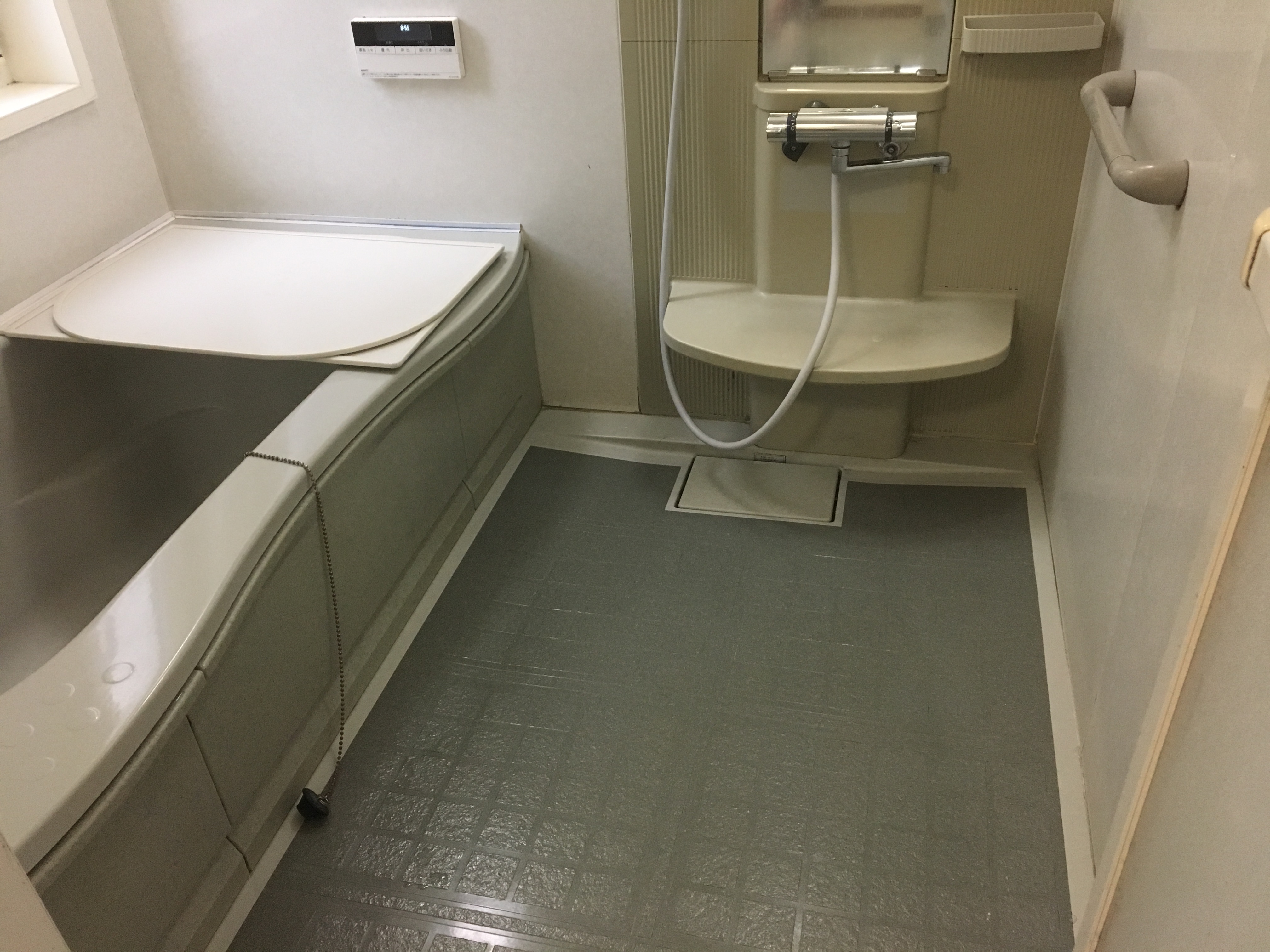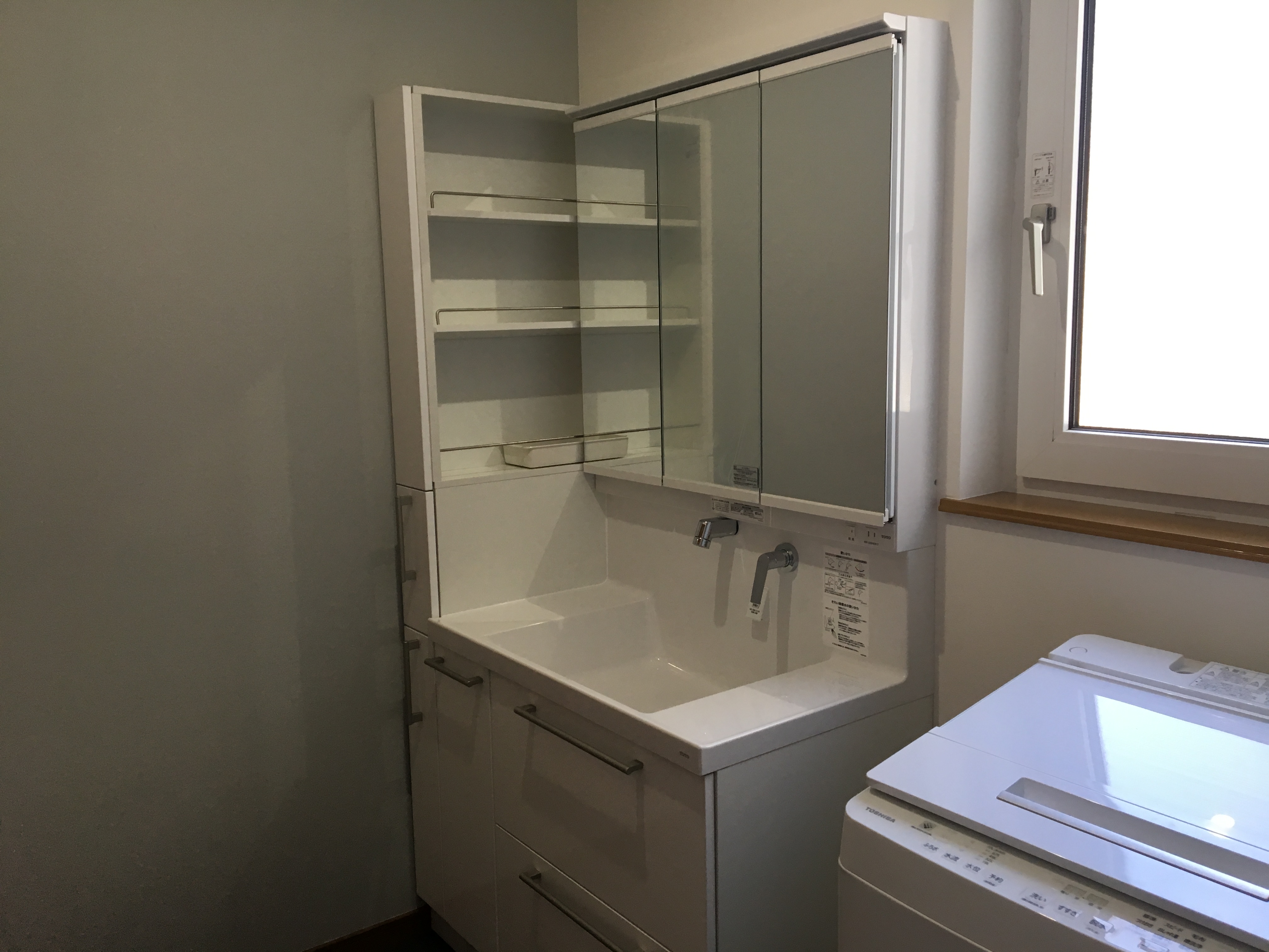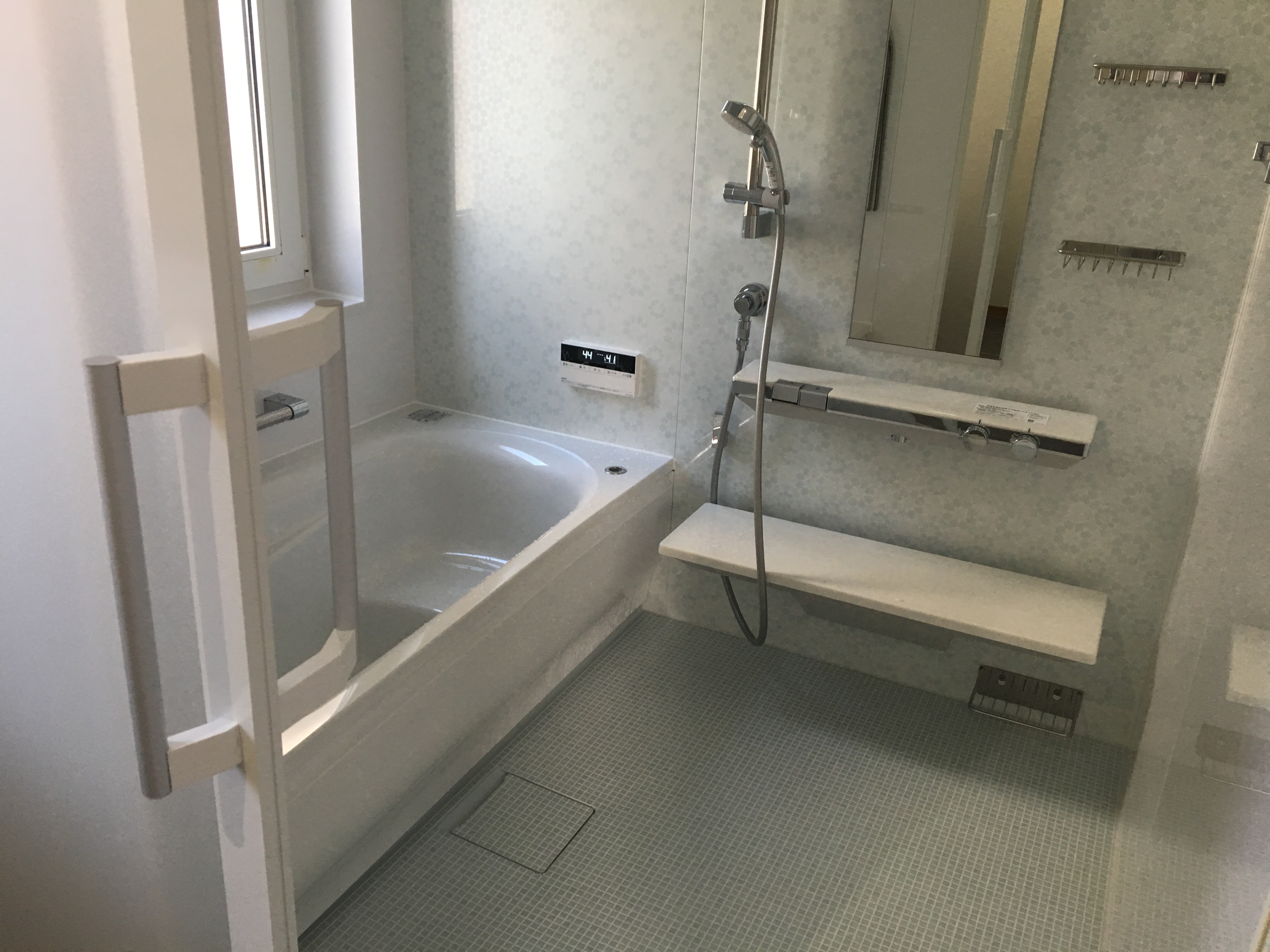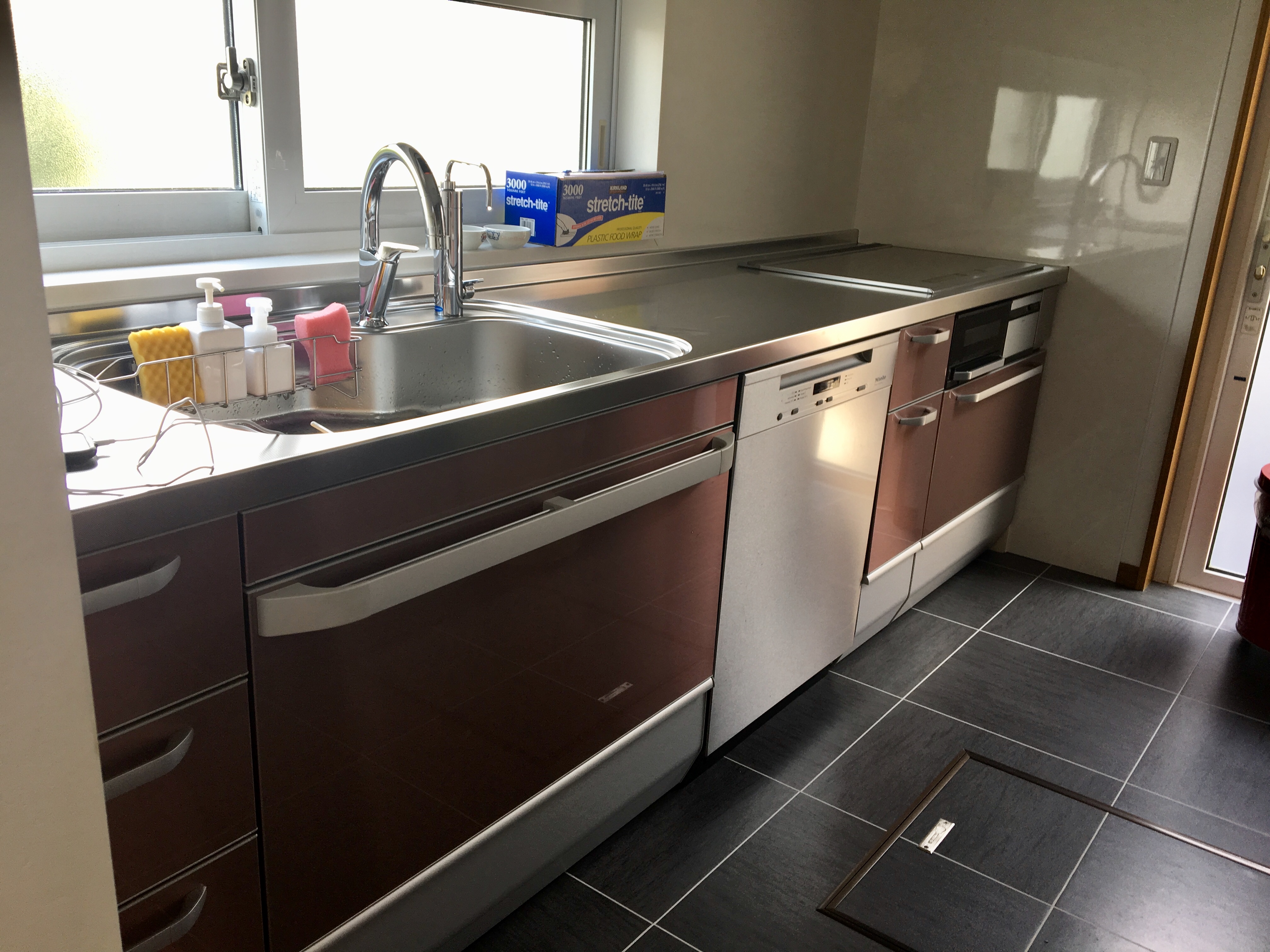 水廻り改装工事のご依頼をいただきました。オーバーヘッドシャワーが付いたバスルームやミーレの食洗機をはじめ、各所にこだわりが感じられる水廻りとなりました。